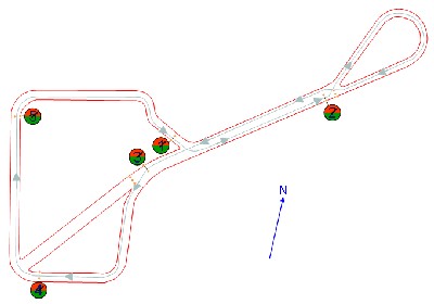 ”Drive around the track clockwise in the right hand lane at a safe speed, pass the red/green clocks ONLY while the hand is in the